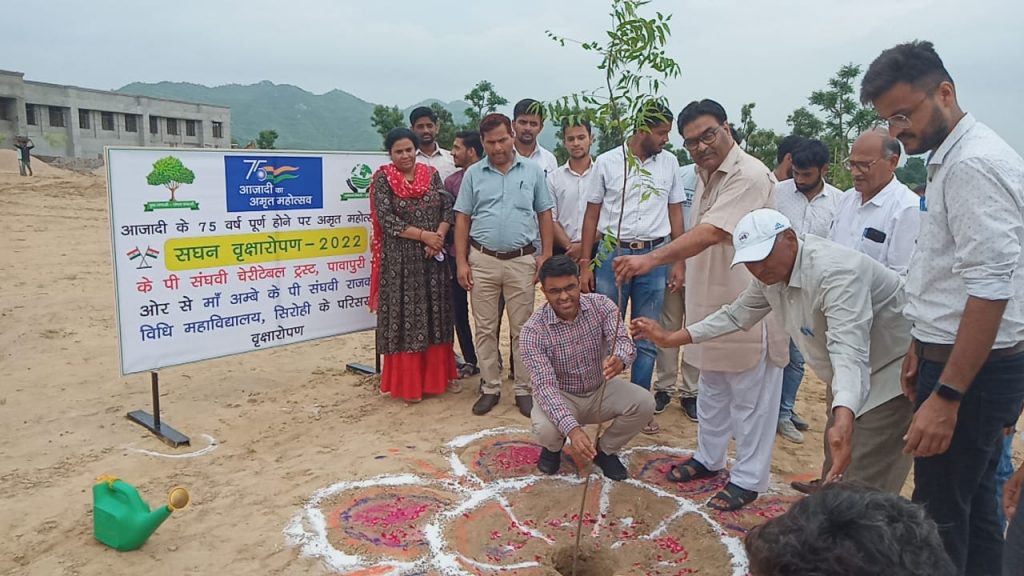 माँ अम्बे के पी संघवी राजकीय विधि महाविद्यालय सिरोही के परिसर में लगाये 451 पौधे ।