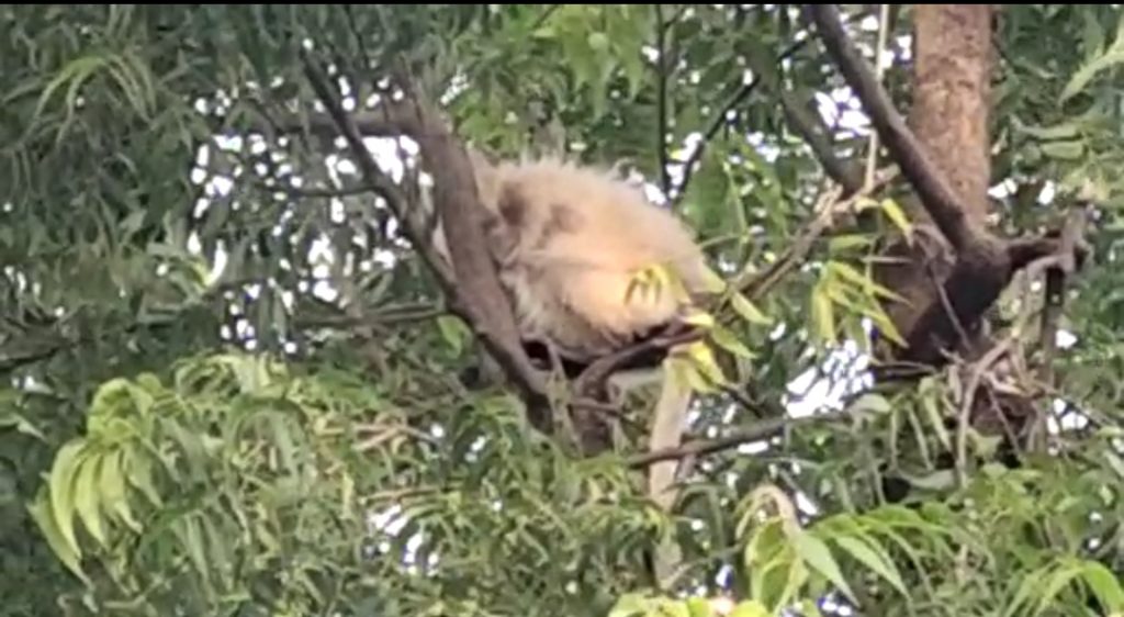 तार में फंसे बंदर के बच्चे को रेस्क्यू किया।