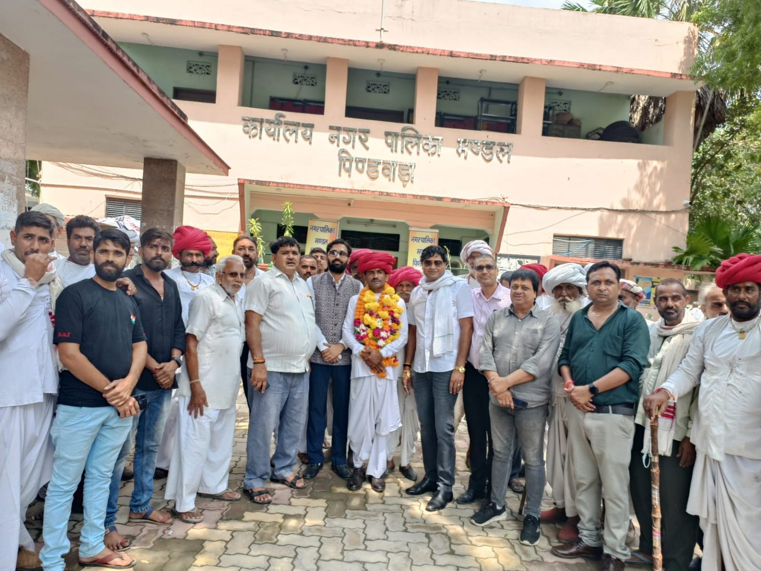 – पिण्डवाड़ा नगर पालिका अध्यक्ष पद पर स्वायत शासन विभाग के आदेशानुसार चेलाराम देवासी की नियुक्ति के आदेश के बाद देवासी ने अपनी पारंमपारिक वेशभूषा मे अपने समर्थको के साथ नगर पालिका पहुंचकर नगर पालिका पिण्डवाड़ा अध्यक्ष का पदभार ग्रहण कीया।जानकारी के अनुसार नगर पालिकाध्यक्ष जितेन्द्र प्रजापत के विरूद्ध अविश्वास प्रस्ताव पास होने के बाद रिक्त हुए पालिका अध्यक्ष पद पर 13 दिन बाद स्वायत शासन विभाग निदेशक एवं सयुंक्त सचिव हृदेश शर्मा द्वारा आदेश जारी कर नगर पालिका उपाध्यक्ष चेलाराम देवासी को नगर पालिका अध्यक्ष का कार्यभार ग्रहण करने हेतु अधिकृत किया । आदेश के बाद शुक्रवार को देवासी ने अपने सामाजिक पारंमपारिक लिबास व लाल पगडी पहनकर अपने समाज बंधुओ एवं समर्थको के साथ नगर पालिका कार्यालय पहुंचकर नगर पालिका कार्यवाहक अध्यक्ष का पदभार ग्रहण किया,तत्पश्चात नगर पालिका कार्यालय परिसर मे स्वागत अभिनंदन समारोह आयोजित कर देवासी का सभी ने फुल मालाओ से स्वागत अभिनंदन किया एवं समर्थको व समाज बंधुओ ने ढोल धमाको के साथ झुमते हुए एक दुसरे का मुंह मीठाकर खुशी व्यक्त कि ।