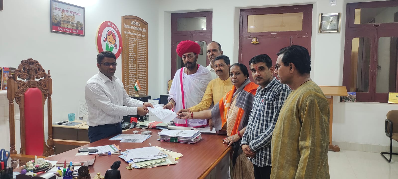 जिला अस्पताल एवम लंपी ग्रस्त गायों के इलाजो की हो रही अव्यवस्था को लेकर जिला कलेक्टर को सौपा पूर्व गोपालन मंत्री भोपाजी ने ज्ञापन ।