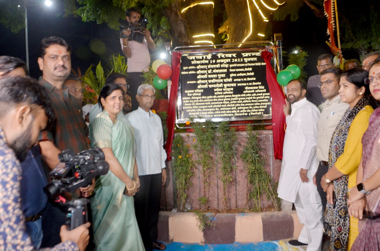 - नगर पालिका प्रशासन की ओर से जवाई नदी किनारे पर करीब दो करोड़ रूपए खर्च कर तैयार करवाए गए जवाई रिवर फं्रट का बुधवार की देर शाम मुख्यमंत्री के सलाहकार विधायक संयम लोढ़ा ने जिला कलक्टर डॉ भंवरलाल एवं पुलिस अधीक्षक श्रीमती ममता गुप्ता की उपस्थिति में विधिवत रूप से पूजा अर्चना कर शिलालेख का अनावरण कर शुभारंभ किया।