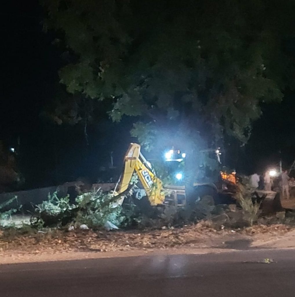 भाटकडा बायपास रोड पर स्थित हिरो शोरूम के सामने की भूमि पर लगें विशाल हरे भरे पेड़ों की जेसीबी मशीनों से रात के अंधेरे में बलि लेकर विशाल हरे पेड़ों को जमींदोज युद्धस्तर पर जब किया जा रहा है जब रविवार के अवकाश के साथ जिले के तमाम छोटे-बड़े अधिकारीगण माननीय मुख्यमंत्री साहब के आबुरोड प्रवास के कारण सभी अधिकारीगण आबूरोड में है