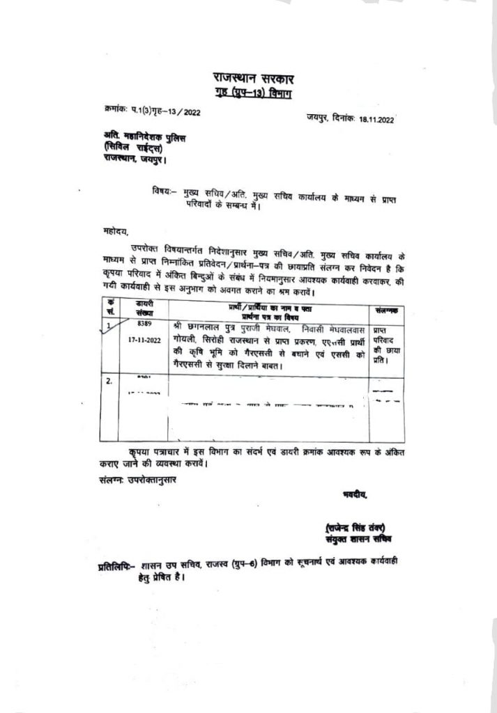 मुख्य सचिव ने परिवाद पर की कार्यवाही शुरू।