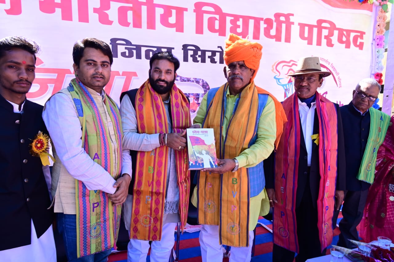 सिरोही – अखिल भारतीय विधार्थी परिषद द्वारा छात्र गर्जना सम्मेलन आज महावीर चक्र विजेता दिगेंद्र सिंह ,एबीवीपी के राष्ट्रीय मंत्री होशियार सिंह मीणा, एबीवीपी के प्रांत संगठन मंत्री पूरन सिंह की उपस्थिति में संपन्न हुआ। छात्र गर्जना सम्मेलन को संबोधित करते हुए महावीर चक्र विजेता दिगेंद्र सिंह ने कहा कि मुझे गर्व है कि मुझे भारतीय सेना में जाने का मौका मिला वह देश के लिए सेवा करने का अवसर मिला। कारगिल युद्ध की ऐतिहासिक स्मृतियों को साझा किया उन्होंने कहा कि युवा अपने भविष्य के लक्ष्य का निर्धारण करते हुए आगे बढ़े तथा देश और समाज का नाम रोशन करें सम्मेलन को संबोधित करते हुए प्रांत संगठन मंत्री पूरण सिंह ने कहा कि भारतीय विद्यार्थी परिषद राष्ट्र निर्माण की और आगे बढ़ रहा है विद्यार्थी परिषद के कार्यकर्ता 1949 से लेकर समाज के बीच में कार्य करते हैं विद्यार्थी परिषद का लक्ष्य भारत पुनःअपने गौरवशाली वैभव को प्राप्त करे इसी को लेकर ज्ञान शील एकता के मंत्र के साथ विद्यार्थीयो के बीच कार्य करती है। राष्ट्रीय मुद्दों को लेकर हमेशा संघर्ष करती रही है जिसमे धारा 370 व राष्ट्रीय शिक्षा नीति, बांग्लादेशी घुसपैठियों के खिलाफ आंदोलन व अनेक ऐतिहासिक कार्यों का जिक्र किया।
