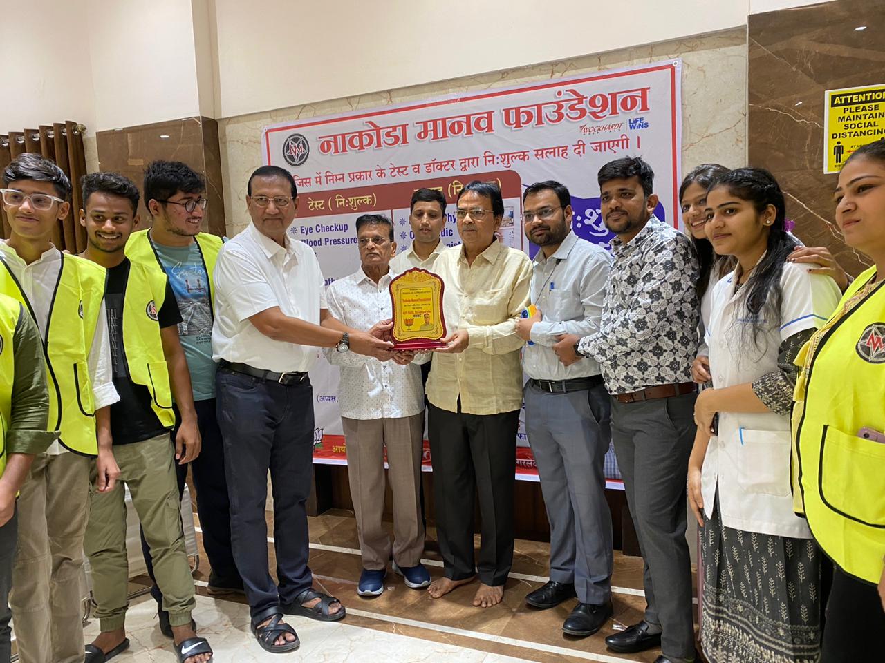 इस कैम्प में सभी प्रख्यात डॉक्टर हड्डियों के ,महिलाओं के, आँखों के और जनरल डॉक्टर द्वारा सलाह दी गई और सभी मरीजों ने लाभ लिया इस कैम्प में नाकोडा मानव फाउंडेशन के चेयरमैन और उनकी टीम को ट्राफी देकर सम्मानित किया।