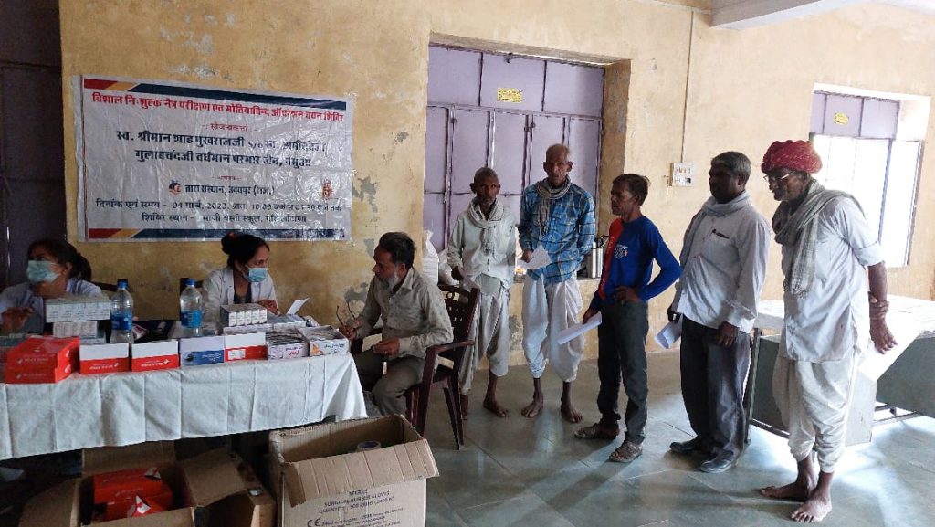 लौटाना की साजा बस्ती में आयोजित एक दिवसीय नेत्र शिविर में 110 नेत्र रोगियों का रजिस्ट्रेशन के बाद जांच, परामर्श, एवं दिए चश्मे,तथा 21का मोतियाबिंद ऑपरेशन के लिए चिन्ही करण.