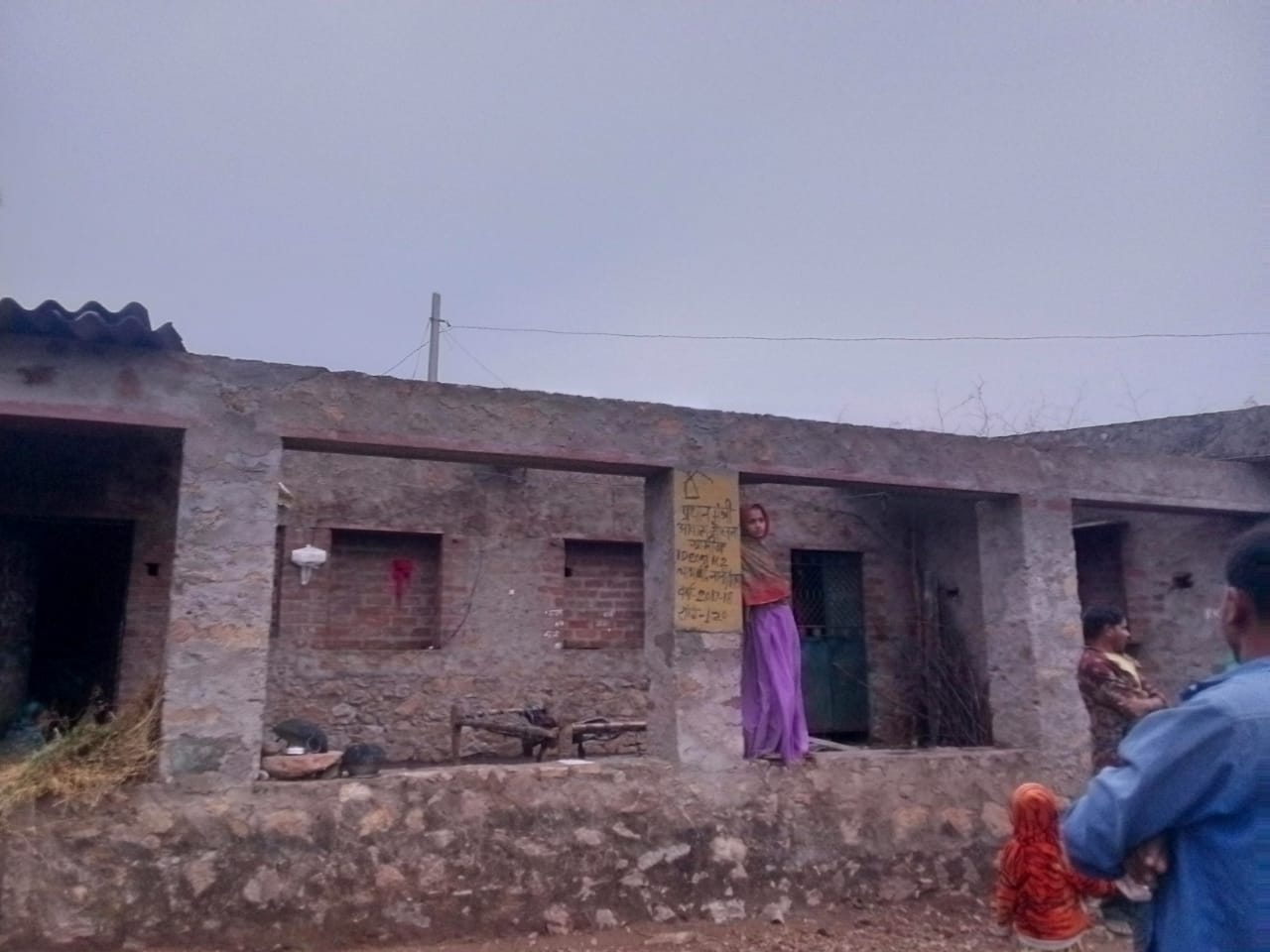 फोटो:– पाबा की रतोरा फली में सोमवार शाम चली तेज हवा की चपेट में ध्वस्त सीमेंटेड टीन शेड।