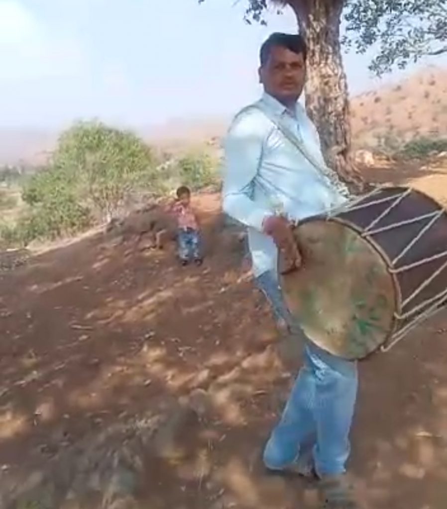 फोटो:– गुजरात सीमा की सरहद के राजस्थान के गांव रणोरा में होली कोउत्सव की विशेष ध्वनी के रूप में ढोल बजाता वरदहस्त ढोलवादक।