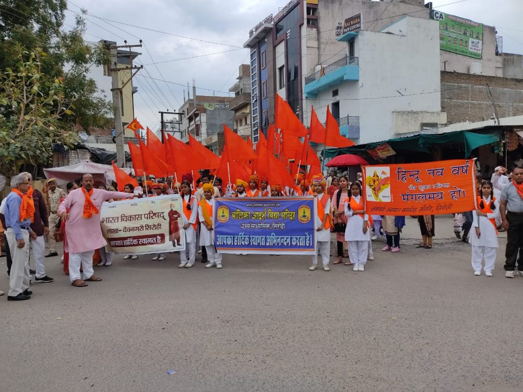 विद्यालय के प्रधानाचार्य मधुसूदन त्रिवेदी द्वारा भारतीय नववर्ष मनाने के बारे में विस्तृत जानकारी दी गई। भारतीय नववर्ष चैत्र शुक्ल प्रतिपदा को ही क्यों मनाया जाता है ? सृष्टि का प्रारम्भ सतयुग का प्रथम दिन, भगवान श्रीराम व युधिष्ठिर का राज्यभिषेक, आर्यसमाज के संस्थापक स्वामी दयानन्द सरस्वती, राष्ट्रीय स्वयंसेवक संघ के संस्थापक परमपूज्य डा. केशराव बलिराम हेडगेवार का जन्मदिन, गुडी पडवा, नवरात्रि का प्रारम्भ, मौसम बदलता है, फसल कटाई का समय रहता है। इसलिए समाज में आनन्द का उत्सव रहता है। महाराजा विक्रमादित्य द्वारा विदेशीय आक्रान्ताओं को हराकर सुसंगठित राज्य का संचालन किया था। तथा हिन्दु नववर्ष के दिन एक विशाल शोभायात्रा का आयोजन किया गया। यह यात्रा रामझरोखा मैदान से निकलकर नीलवनी चौक, खारी बावडी, सरजावाव दरवाजा, लक्ष्मी ज्यूस सेन्टर, नया बस स्टैण्ड व एल.आई.सी. से भाटकडा होते हुए रामझरोखा समापन हुआ। इस शोभायात्रा में विद्यालस की बहिनों व आचार्यो तथा समाज के प्रबुद्ध नागरिकोें ने बढ-चढ़कर भाग लिया। विद्यालय की बहिनों ने बाजार में उपस्थित नागरिकों को तिलक व गुड-धनिया खिलाकर हिन्दु नववर्ष की शुभकामनाएँ दी। बाजार में विभिन्न जगहों पर गरबों का आयोजन हुआ। नये वर्ष पर गीत गाये गए व मिठाई खिलाई गई । इस शोभायात्रा में बैण्ड-बाजे, घोडे, सभी बहनो के हाथ में भगवा पताकायें भी थी और उत्साहपूर्वक सभी नगर वासियों को भारतीय नववर्ष की शुभकामनाएँ दी।
