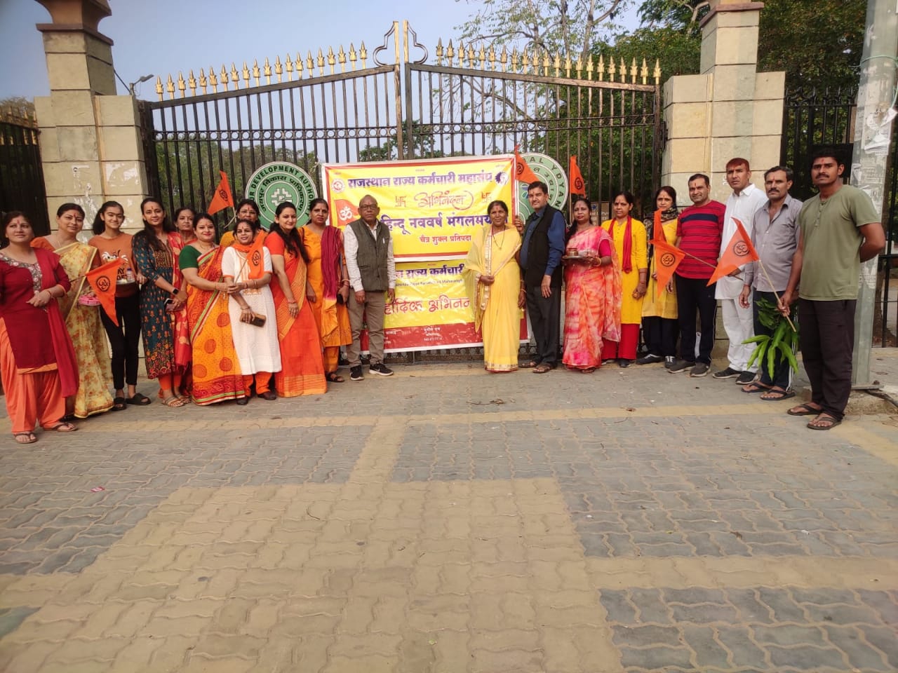 भारतीय मजदूर संघ तथा राजस्थान राज्य कर्मचारी महासंघ से सम्बद्ध सभी संगठनों ने नव वर्ष का स्वागत रक्षा सूत्र मौली बांध तथा तिलक लगाकर किया । भामसं के मिडिया प्रभारी राव गोपालसिंह पोसालिया के अनुसार भामसं से सम्बद्ध तथा कर्मचारी महासंघ ( भामसं ) से सम्बद्ध सभी सम वैचारिक संगठनों ने नव वर्ष विक्रम संवत२०८० का स्वागत हर्षोल्लास से किया ।संगठन से सम्बद्ध सभी इकाइयों तथा संगठनों ने अपने अपने उपक्रमों में परस्पर एक दूसरे को बधाई दी।उपक्रमों , आवासों पर धर्म ध्वाजा को फहराकर,अशोक वृक्ष की पत्तियों के बंधनवार लगाये।खीर पुरी का भगवान को भोग लगाकर प्रसाद वितरित किया ।मंदिरों की महा आरती तथा सांय काल में घरों पर दीपक लगाने तथा दिन भर इष्ट मित्रों ,परिजनों एवं रिश्तेदारों को नव वर्ष पर शुभकामनाएं देने के कार्यक्रम हुये ।भारतीय मजदूर संघ के प्रदेश अध्यक्ष राजेन्द्रसिंह डाबी, महामंत्री हरि मोहन शर्मा , कर्मचारी महासंघ भामसं के प्रदेश अध्यक्ष विजयसिंह धाकड,महामंत्री राकेश शर्मा ,राष्ट्रीय कार्य समिति सदस्य श्रीमती अनुराधा शर्मा ,सरोज यादव ,लक्ष्मी शर्मा , सुनिता सैनी,अशोक यादव,रचना ,वर्षा सांवरिया , श्रीमती आशा देवडा, सविता गर्ग ,गणेशसिंह गुर्जर ,दशरथसिंह भाटी, इन्दुबाला चौहान ,सुरेश कुमार प्रजापत सहित सभी दायित्ववान तथा कार्यकर्ताओं ने बढ चढ़कर सहभागिता निभाई ।