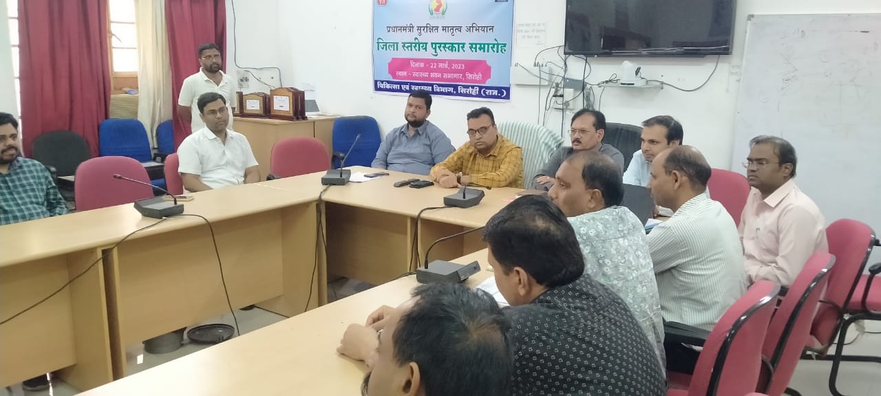जिले में चिकित्सा एवं स्वास्थ्य विभाग ने प्रधानमंत्री सुरक्षित मातृत्व अभियान में उत्कृष्ट कार्य करने वाली संस्थाओं का सम्मान मुख्य चिकित्सा एवं स्वास्थ्य अधिकारी डॉ. राजेश कुमार की अध्यक्षता में किया। प्रधानमंत्री सुरक्षित मातृत्व अभियान में उल्लेखनीय सेवाऐं देने पर 9 संस्थाओं को सम्मानित किया गया। सीएमएचओ डॉ. राजेश कुमार ने बताया कि पीएमएसएमए अभियान में विगत वर्ष में उल्लेखनीय सेवाये देने वाली संस्था जिला अस्पताल शिवगंज, सीएचसी पिण्डवाड़ा, स्वरूपगंज, आबूरोड़, पीएचसी पालड़ी एम, नितोडा, आल्पा, देलदर, वीरवाड़ा के चिकित्सा अधिकारी प्रभारी को प्रशस्ति पत्र व स्मृति चिन्ह प्रदान कर सम्मानित किया। आरसीएचओ डॉ. विवेक कुमार ने सभी विजिताओ को बधाई और शुभकामनाएं प्रेषित करते हुए कहा कि प्रदेश में जिले के स्वास्थ्य विभाग का कार्य हमेशा ही बेहतर रहता है। जिले की रैंकिंग कभी नीचले पायदान पर नही रहती। यह स्वास्थ्य विभाग के कर्मियों की मेहनत का नतीजा है। इस अवसर पर डिप्टी सीएमएचओ डॉ. महेश गौतम, डॉ. राम लाल, डॉ. जय सिंह, डॉ. सलीम खाँ, डॉ. गिरीश माथुर, धन्नीराम झा जिला कार्यक्रम प्रबंधक नरेश कुमार, जिला आईईसी समन्वयक दिलावर खाँ, गजेन्द्र सिंह राजपुरोहित सहित जिले के चिकित्सा अधिकारी के अनेक स्वास्थ्य विभाग का स्टाफ मौजूद रहे।