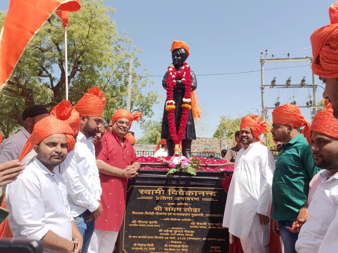 जिला मुख्यालय पर नगरपरिषद सिरोही क्षेत्र के पी.डब्ल्यु.डी. काॅलोनी में स्थित गार्डन में स्वामी विवेकानन्द की प्रतिमा का अनावरण समारोह के मुख्य अतिथि मुख्यमंत्री सलाहकार एवं विधायक संयम लोढा द्वारा किया गया। इस अवसर पर विधायक संयम लोढा ने कहा कि स्वामी विवेकानन्द भारत के ही नहीं बल्कि संपूर्ण विश्व के नायक रहे है। विवेकानन्द ने सभी धर्मो का अध्ययन किया , वे सभी धर्मो को मानव हित से पे्ररित मानते थे। विधायक लोढा ने उन सभी नागरिकों का आभार व्यक्त किया जिन्होंने स्वामी विवेकानन्द की प्रतिमा स्थापित करने के लिए कडा संघर्ष किया। उन्होंने कहा कि हमें अपने बालकों को स्वामी विवेकानन्द के जीवन के बारें में जानकारी दी जानी चाहिए ताकि वे राष्ट्रहित में समर्पित होकर देश को एक सूत्र में बांध सके। विधायक संयम लोढा ने सनातन धर्म की विशालता का वर्णन करते हुए कहा कि सनातन धर्म को समझने के लिए हमारा जीवन भी कम पड जाता है। सनातन धर्म युगो-युगो से चला आ रहा है। उन्होंने कहा कि शंकराचार्य ने पूरे भारत वर्ष की पदयात्रा कर चार पीठ स्थापित कर धर्म के माध्यम से राष्ट्रीय एकता स्थापित करने एवं पूरे देश को एक सूत्र में बाधने का कार्य किया है। उन्होंने भक्तिकाल के संतों का उदाहरण देकर कहा कि भक्तिकाल के समय मुगलों का शासन था, लेकिन भक्ति रस की धारा प्रवाहित होती रही अर्थात धर्म की ध्वजा किसी शासन के आगे न तो झुकती है , न ही रूकती है। विधायक लोढा ने कहा कि मर्यादा पुरूषोतम राम का अपने पिता के प्रति आदर एवं भाईयों का स्नेह मानव जाति के सर्वे श्रेष्ठ उदाहरण है। भगवान राम अपने पिता की आज्ञा का पालन करने के लिए अपना सब कुछ न्यौच्छावर कर वन की ओर प्रस्थान कर गए। इसलिए वे मर्यादा पुरूषोत्तम कहलाते है। उन्होंने कहा कि हमें अपने बच्चों को भगवान राम , कृष्ण व अन्य महापुरूषों व देश भक्तों की जीवनी के बारें में जानकारी देनी चाहिए ताकि वे जीवन में किसी भी आपदा का मुकाबला कर सके। विधायक लोढा ने कहा कि हमें सनातन धर्म की संस्कृति से अ्रोत-प्रोत भारत भूमि में जन्म लेने का सौभाग्य प्राप्त हुआ है, इसे महसूस किया जाना चाहिए तभी हम जीवन के हर संकट , आपदा व विपत्तियों का सामना कर सकेगे। नगरपरिषद के सभापति महेन्द्र मेवाडा ने नगर के समस्त नागरीकों को इस शोभायात्रा एवं प्रतिमा अनावरण समारोह में अधिकाधिक संख्या में भाग लेकर कार्यक्रम को सफल बनाने के लिए आभार ज्ञापित किया। समारोह को पार्षद सुरेश सगरवंशी एवं एनएसयूआई के दशरथ नरूका ने भी स्वामी विवेकानन्द की जीवनी पर प्रकाश डाला। प्रतिमा अनावरण से पूर्व प्रातः रामझरोखा मैदान से रवाना होकर शहर के मुख्य मार्गो से होते हुए स्वामी विवेकानन्द उद्यान तक भव्य शोभायात्रा नि