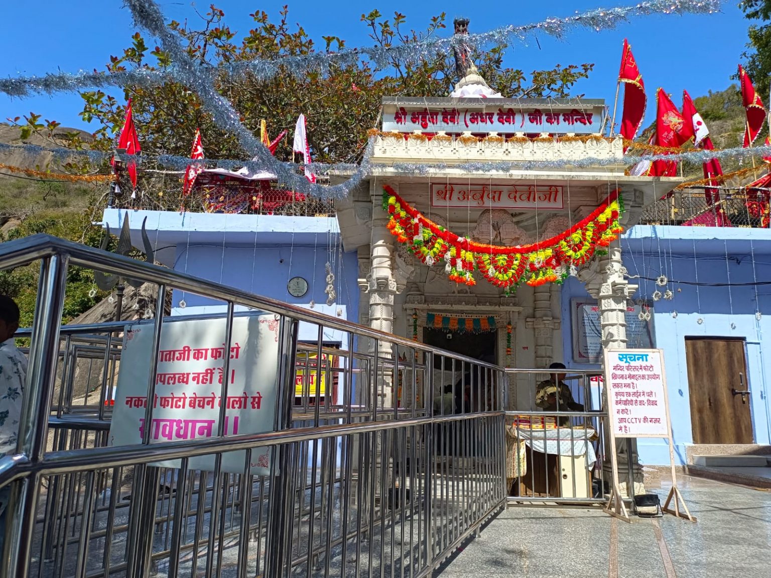 मां अर्बुदा देवी के मंदिर को सजाया जा रहा रंग बिरंगी रोशनी से ।