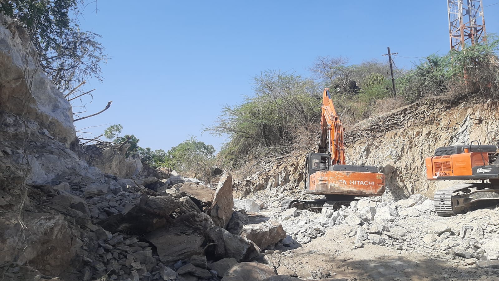 खनन विभाग व नगर परिषद की मंजूरी अवैध तरीके से पहाड़ी पोक लेंड मशीन ने काट डाली,