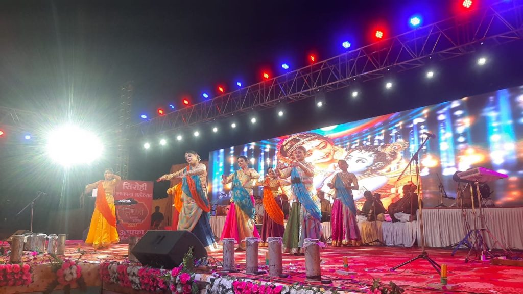 पूजा अर्चना व आरती के पश्चात् दशहरा मैदान में दीपदान कार्यक्रम एवं सांस्कृतिक कार्यक्रम के आयोजन में रेखा ठक्कर जयपुर द्वारा कत्थक नृत्य व क्लासिकल संगीत ( ईस्टूमेंट फ्यूजन, सूफी डांस ), प्रणय – सिरोही के इतिहास की जानकारी के साथ जस्सू, थानू एवं छोटूखान कलाकारो द्वारा जोर दार प्रस्तुतियों में प्रशाशनिक अधिकारी,विधायक,जनप्रतिनिधि,दानदाता भामाशाह व उपस्थित हजारो दर्शक झूम उठे व मध्य रात्रि तक एक से बढ़ कर एक प्रस्तुतियों में दशहरा मैदान में डटे रहे व दोनो बाल कलाकार व अन्य कलाकारों ने समा बांध दिया।