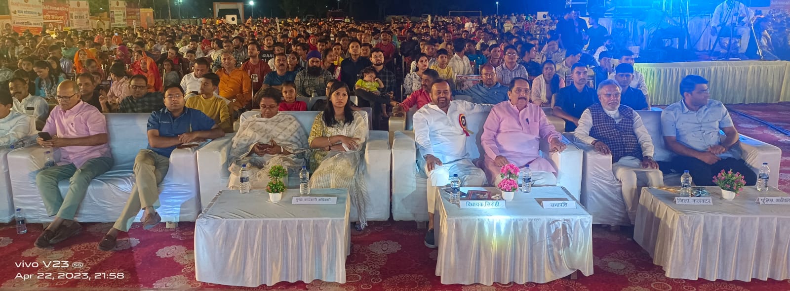सांस्कृतिक संध्या में मुख्यमंत्री सलाहकार विधायक संयम लोढा, सिरोही मूल के निवासी राष्ट्रीय अल्पसंख्यक आयोग के सदस्य सुनील सिंघी व श्री राज के पुरोहित पधारे ओर आयोजन का पूरा आनंद लिया । दोनों ने इस शानदार आयोजन के लिए जिला कलक्टर डॉ भवंर लाल व उनकी पूरी टीम को तहेदिल से धन्यवाद देते हुए कहा कि सिरोही शहर में इतने इफेक्टिव आयोजन करवाए जिसकी उम्मीद उन्हें नही थी, लेकिन जब कार्यक्रम देखे तो दिल खुश हो गया । दोनो ने स्थानीय कलाकारों को मंच देने की जो पहल की वो भी स्वागत योग्य है। जिला प्रशासन ,जनता व जनप्रतिनिधियों की पूरी टीम को खूब खूब बधाई व अभिनंदन। उन्होंने विधायक संयम लोढा से बातचीत करते हुए कहा कि इस तरह के आयोजन आज की आवश्यकता है और आपने इस आवश्यकता को समझा और ऐसा शानदार आयोजन करवाने में सहयोगी बने।
