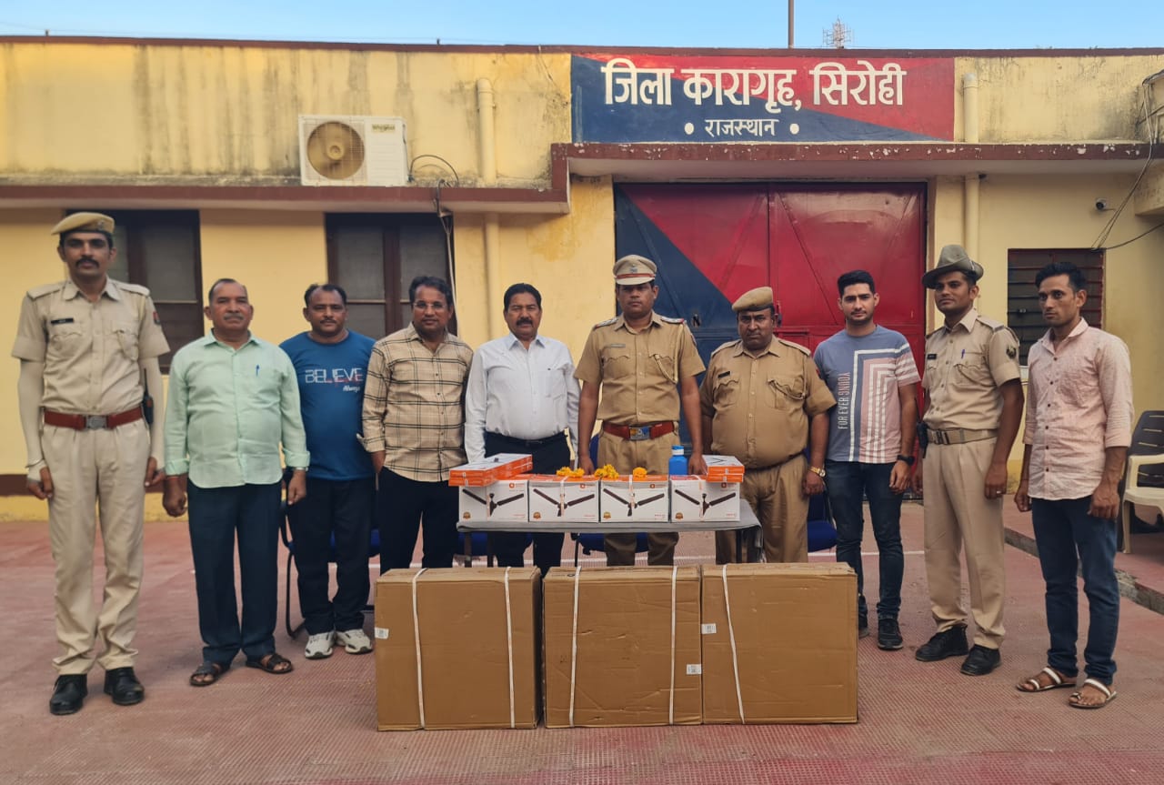 जिला कारागार के उपाधीक्षक विक्रमसिंह के आग्रह पर श्रीमती पुरीबाई पुनमाजी माली चेरिटेबल ट्रस्ट, सिरोही एवं होटल बाबा रामदेव, सिरोही के सौजन्य से 16 इलेक्ट्रीक पंखे वितरण किये गये ।