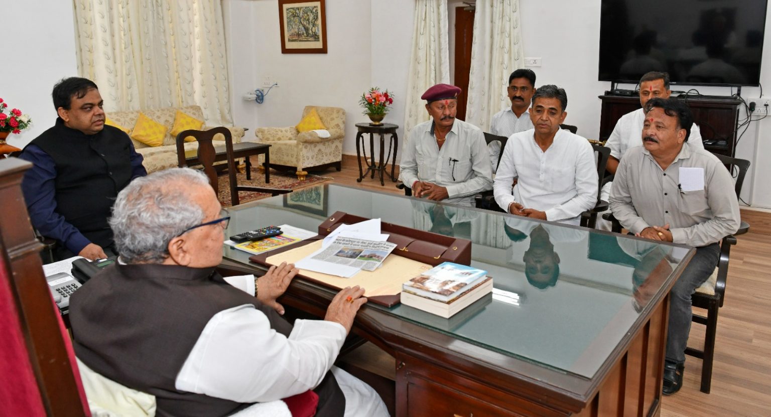महामहिम से मिल भाजपा नेताओं ने व्यथा बताई ,कहा आमजन दुखी व त्रस्त है, पत्र देकर जनहित समस्याओं के निदान का आग्रह किया, शिष्टाचार मुलाकात में सिरोही की तलवार भेंट की ।