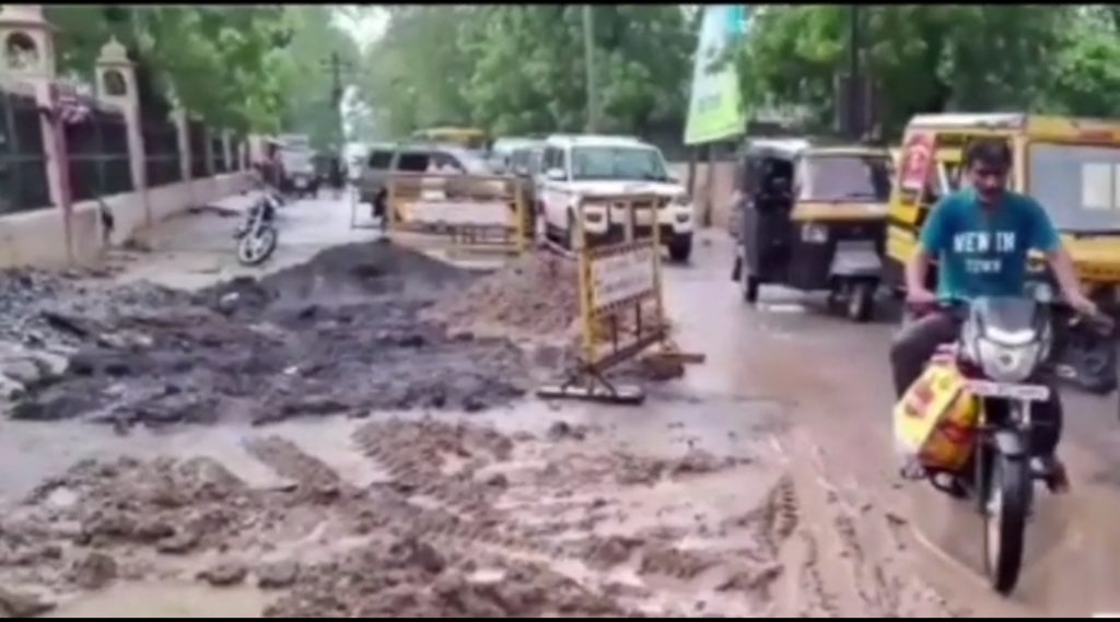 बारिश से सड़के हुई गड्ढो में तब्दील,