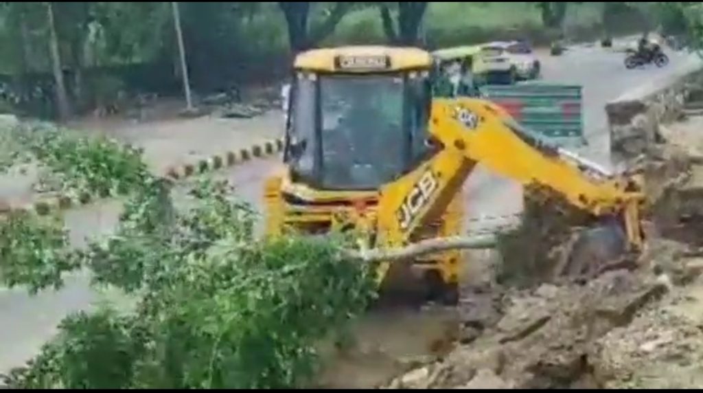 जेसीबी की मदद से सड़क पर फैले मलबे को हटवा कर करवाया दुरुस्त.