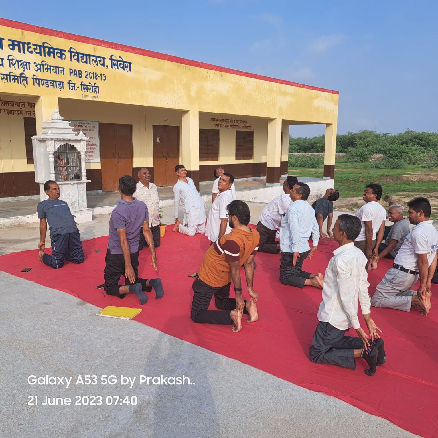 आज अंतराष्ट्रीय योग दिवस पर रा उ मा स्कूल सिवेरा में योग प्रशिक्षक भवरलाल मीणा व जसवंत सिंह चौहान ने योग करवाये ।