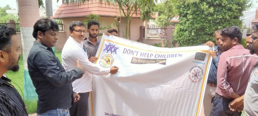 पिण्डवाड़ा – कोटडा आदिवासी संस्थान के द्वारा बालश्रम निषेध उमंग 2.00 की शपथ व हस्ताक्षर अभियान का आयोजन ।बालश्रम बच्चो के लिए एक अभिशाप है बालश्रम को रोकने के लिए दुनिया भर में प्रस्ताव जारी है। बालश्रम को देखते हुए 12 जुन को हर साल तमाम देशों में बालश्रम अभिशाप को जड़ से खत्म करने के लिए इस माह के दौरान लोगो को जागरूक किया जा है वल्ड चाइल्ड लेबर डे मनाने का मुख्य उद्देश्य लोगों को इसके प्रति जागरूकता फैलाना है इसके दौरान दिनांक को जागरूकता हस्ताक्षर अभियान की शुरुआत हसमुख कुमार उपखंड अधिकारी पिण्डवाडा व जेठू सिंह करणोत उपपुलिस अधीक्षक,महीपसिंह खण्ड विकास अधिकारी पिण्डवाडा पूर्व नगर पालिकाध्यक्ष व ब्लॉक कांग्रेस अध्यक्ष अचलसिंह बालिया एवं नगर पालिकाध्यक्ष सुरेंद्र मेवाडा के कर कमलो द्वारा हुआ है व पोस्टर हस्ताक्षर अभियान के साथ बाल श्रम मुक्त करने के लिए शपथ दिलवाई। बच्चों व आमजन को जागरूक करने के लिए संदेश प्रसारित किया गया।