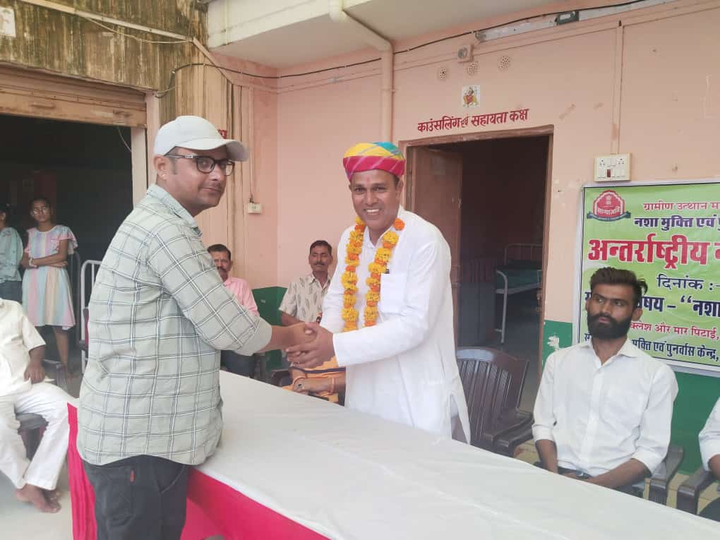 अंतराष्ट्रीय नशा निरोधक दिवस पर नशा मुक्ति एवं पुनर्वास केंद्र कालन्द्री परिचर में का आयोजन हुआ। जिसमें अध्यक्षता स्वास्थ्य कर्मचारी मुकेश कुमार जालोर, मुख्य अतिथि हरीश परिहार पीसीसी सदस्य व गांधी दर्शन शिवगंज संयोजक ने नशे से दूर रहने की अपील की गई और धार्मिक आयोजनों में नशे को रिवाज की तरह परोस कर समाज के लिए घातक है। हमे ऐसे आयोजनों में नशे पर प्रतिबंध लगाना चाहिए और बड़े बुजुर्गों को पुराने रीति रिवाज से अब परहेज करना चाहिए जिससे नशे से दूरी बनी रहे।