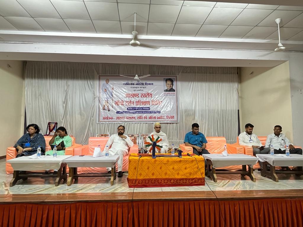 राजकीय महाविद्यालय के प्राचार्य नवनीत वर्मा, कवि एवं वक्ता कार्तिकेय शर्मा , बाल कल्याण समिति की अध्यक्षा रतन बाफना, सहायक निदेशक राजेन्द्र पुरोहित , प्रोफेसर हिन्दी संध्या दुबे व ज्ञान विकास मिश्रा,सामाजिक सुरक्षा अधिकारी अशोक कुमार इत्यादी ने गांधी दर्शन पर आधारित रचनात्मक , कल्याणकारी योजनाओं की जानकारी दी। कार्यक्रम के बीच-बीच में गांधी भजन संध्या एवं देश भक्ति गीत के साथ सम्पन्न हुआ। इस मौके पर महात्मा गांधी अंग्रेजी माध्यम से छात्राए ने गीत एवं राष्ट्रगान का गायन किया। मंच संचालन दिलीप शर्मा ने किया। इस शिविर में सिरोही ब्लाॅक के प्रतिभागी मौजूद रहें।