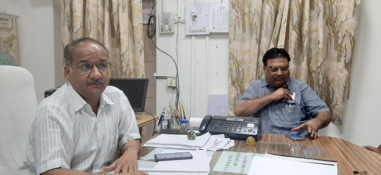 सभापति महेंद्र मेवाड़ा व पार्षद सुधांशु गौड़ ने सुनाई सानिवि अभियंता को खरी ख़री।