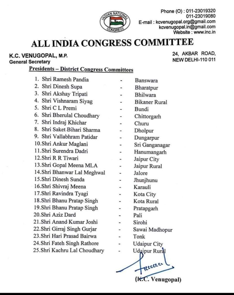 कोंग्रेस के रास्ट्रीय नेतृत्व ने राज्य में दुबारा सरकार बनाने में बड़े स्तर पे रूपरेखा तय कर गुटबाजी को साधने में जोशी को अध्यक्ष बना उपेक्षित ब्राम्हण जाति का भी सम्मान किया है।वही जलोर जिले केरतन देवासी (रानीवाड़ा) को प्रदेश उपाध्यक्ष ,हरिश चौधरी(आबूरोड) प्रदेश महासचिव हरीश परिहार (शिवगंज) प्रदेश सचिव चारो नेताओ की नियुक्ति कर जालोर सिरोही में सोशल इंजीनियरिंग में जातियों को भी कोंग्रेस संगठन में रास्ट्रीय जनरल सेक्रेट्री के सी वेणुगोपालन ने नियुक्ति कर कोंग्रेस को मजबूत करने का प्रयास किया है।