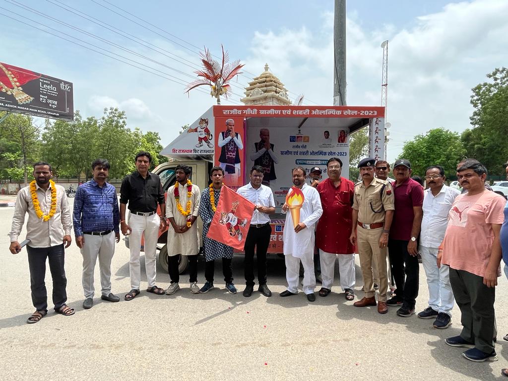 राजीव गांधी ग्रामीण व शहरी ओलम्पिक खेलकूद प्रतियोगिता से संबंधित मशाल रथ सिरोही पहुंचा, किया स्वागत ,
