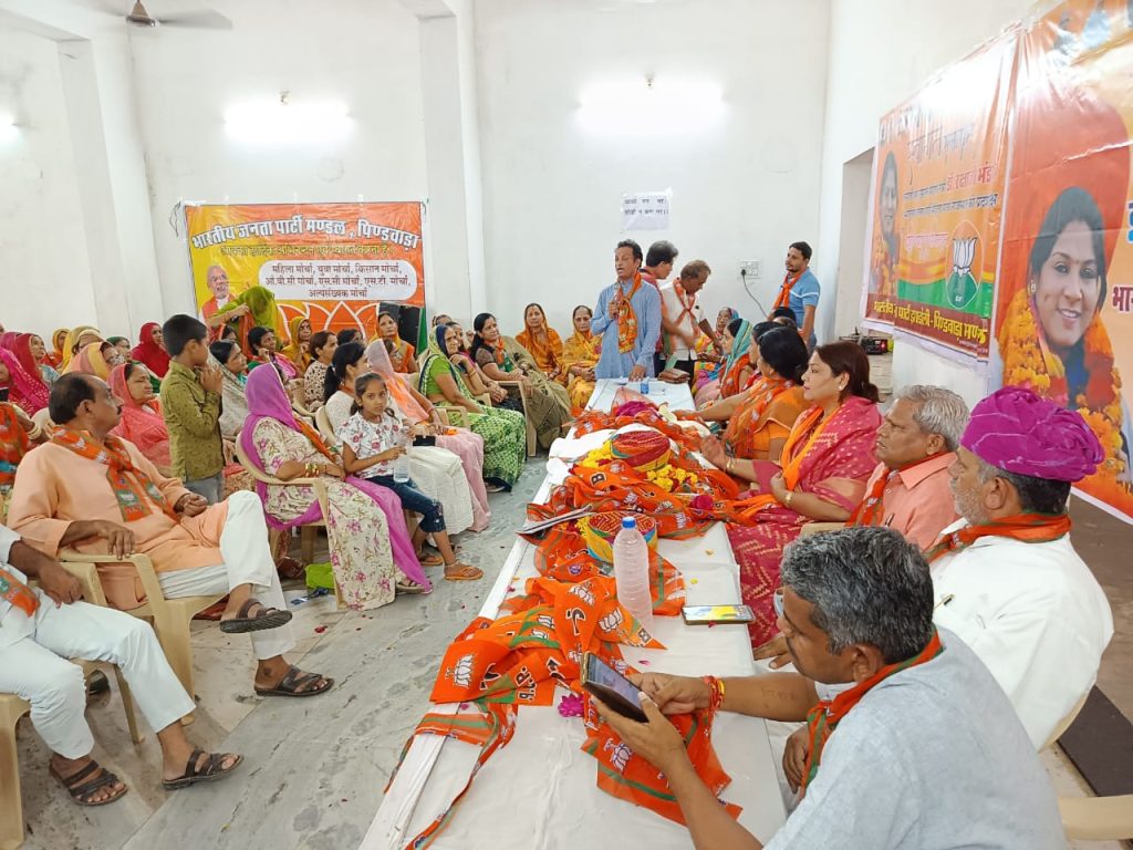 पिण्डवाड़ा – पिण्डवाड़ा भारतीय जनता पार्टी पिण्डवाडा व झाडोली मण्डल के संयुक्त तत्वाधान मे नव नियुक्त महिला मोर्चा प्रदेश अध्यक्ष डाॅ रक्षा भंडारी का स्वागत कार्यक्रम देव भुमि सिरोही जिले की धरती का नाम अपनी सक्रियता एवं सभी कार्यकर्ताओ का सम्मान करने वाली व अपनी कार्यशैली से रोशन करने वाली डाॅ रक्षा भंडारी के महिला मोर्चा प्रदेश अध्यक्ष बनने पर आज गहलोत भवन बाणमाता मन्दिर के पास मे स्वागत सत्कार सम्मान समारोह कार्यक्रम मे पिण्डवाडा मे प्रदेश अध्यक्ष बनने पर प्रथम कार्यक्रम मे पधारी व सम्मेलन की शुरूआत डॉ श्यामा प्रसाद मुखर्जी एवं पं दीनदयाल उपाध्याय जी को नमन कर किया,मण्डल अध्यक्ष महावीर यति ने सभी कार्यकर्ताओ के साथ माला साॅल व पार्टी दुप्पटे से स्वागत किया गया, नवनियुक्त प्रदेश अध्यक्ष ने सभी कार्यकर्ताओ का एवं महिला कार्यकर्ताओ को घन्यवाद दिया गया ।