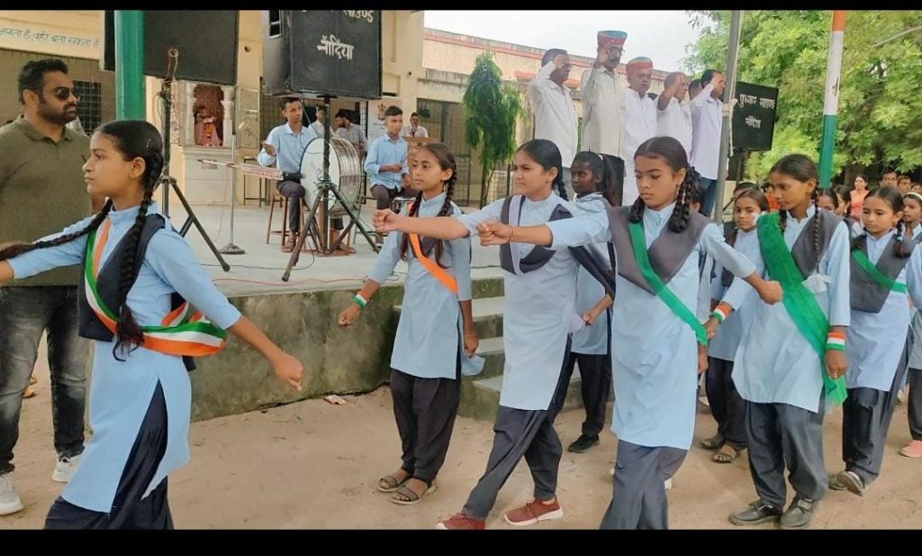 *पिंडवाड़ा निकटवर्ती नांदिया गांव में आज 15 अगस्त के उपलक्ष में तिरंगा ध्वजारोहण, पीटी परेड संस्कृत कार्यक्रम आयोजित कर बड़े उत्साह के साथ धूमधाम से मनाया*