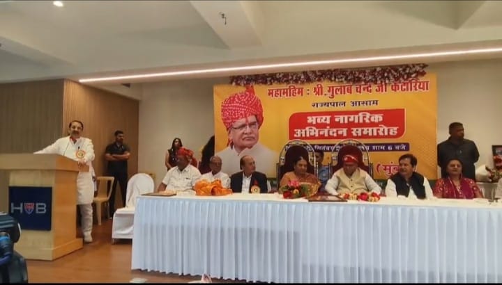 दक्षिण मुंबई क्षेत्र के हिंदी विद्या भवन सभागार मे मेवाड़ मित्र मंडल संस्था के बैनर तले व सयोंजक के नेतृत्व मे नागरिक अभिनन्दन किया गया! समारोह मे असम के राज्यपाल गुलाबचंद कटारिया का मुंबई में पहली बार आगमन पर राजस्थानी समाज द्वारा भव्य स्वागत समारोह आयोजित किया।जिसमे विशेष अतिथि केबिनेट मंत्री मंगल प्रभात लोढ़ा,प्रवासी राजस्थानी समाज के नेता पुर्व मंत्री राज के.पुरोहित थे। इस अभिनन्दन समारोह को सम्बोधित करते हुए राज्यपाल गुलाबचंद कटारिया ने कहा कि ये पद आज है कल नहीं रहेगा।बीजेपी आज जीस मुकाम पर ख़डी है तो वह श्रेय राष्ट्रीय स्वयं सेवक संघ को जाता है! संघ राष्ट्रनिर्माण,देशभक्ति के साथ समर्पण की भावना वाला संगठन है और ये बीजेपी की जागिरी नहीं है ।संघ के सेवक जाति धर्म के चक्र में विश्वास नहीं करता कठिन परिश्रम करने का ही उसकी कुंजी है! विरोधी संघ को क्या जानेगा राष्ट्र निर्माण के लिए संघ ने बहुत बड़ा बलिदान दिया है,और संघ का सेवक बनने के लिए घर को त्याग कर जाति से उपर उठकर शौक मौज,परिवार सभी त्यागना पड़ता है उन्होंने कहा की मोदीजी जीस प्रकार देश व विदेश मे अपना डंका बजाया है जो की उनके साथ ईश्वरीय शक्ति का सहारा लगता है।जो 18 घंटे देश की भलाई के लिए काम करने मे लगे रहते कोई साधारण इंसान नहीं हे। देश की साख दुनिया में सबसे ऊपर लाए और राज के.पुरोहित ने राज्यपाल गुलाबचंद कटारिया के बारे में जानकारी देते हुए कहा की कटारिया जमीन से जुड़े हुए व मँझे नेता रहे। ओर वह अपने राजनीती सफर मे बेदाग रहें है आप ने राजस्थान मे संघ के सेवक बनकर बतौर काम किया और राजनीति मे सफल राजनेता रहें और गृहमंत्री विरोधी पार्टी के नेता बतौर आपने राजस्थान की जनता की आवाज बन मामले उठाए गहलोत सरकार के अत्याचार को सदन और राज्य में उठाया पेपर लीक का मामला उठाकर मेवाड़ का मान बढ़ाया! इसी कड़ी मे केबिनेट मंत्री मंगल प्रभात लोढ़ा ने अपने उद्धबोधन मे कहा की राज्यपाल के राजनिति जीवन पर प्रकाश डालकर बताया की हम कटारिया साहब का सम्मान करने इकट्ठे हुए है किंतु हम उनका क्या सम्मान करें जो खुद एक सम्मान है! उन्होंने इस युग मे राजनीती सफर मे आठ बार विधानसभा सदस्य व एक बार लोकसभा सदस्य बनकर जनता की सेवा की वह उनके राजनीतिक सफर का शानदार उपलब्धि रही है ओर उन्होंने राजनीती सफर मे अपने चरित्र पर कभी दाग लगने नहीं दिया,उन्होंने समय समय पर विधानसभा मे पेपर लिक का मामला हो या जनता की अन्य समस्या हो बड़े शानदार तरिके से रखकर राजस्थान की जनता को न्याय दिलाने का काम किया है, गुलाबचंद कटारिया जी का विधानसभा मे अपना अंतिम भाषन दिल को छू लेने वाला रहा था! इसी क्रम मे समाजसेविका लेखिका मंजु मंगलप्रभात लोढ़ा ने कविता पाठ कर महारा
