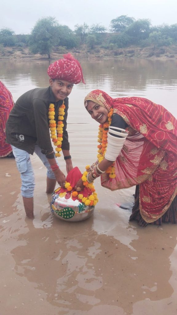 इस अवसर पर कुम्हार समाज के भाई बहिनों समेत बड़ी संख्या में लोग सर्वप्रथम सरियादेवी मंदिर , केरावावास ,मारूओ का वास , खालसा बस स्टैंड , अंबाला की सेरी ,सभी मिलकर समाज की कुमावत धर्मशाला पहुंचे वहाँ ढोल – थाली की झनकार से पैदल रवाना होकर खारा रोड़ पर स्थित कुमटिया नाड़ा पहुंचे।