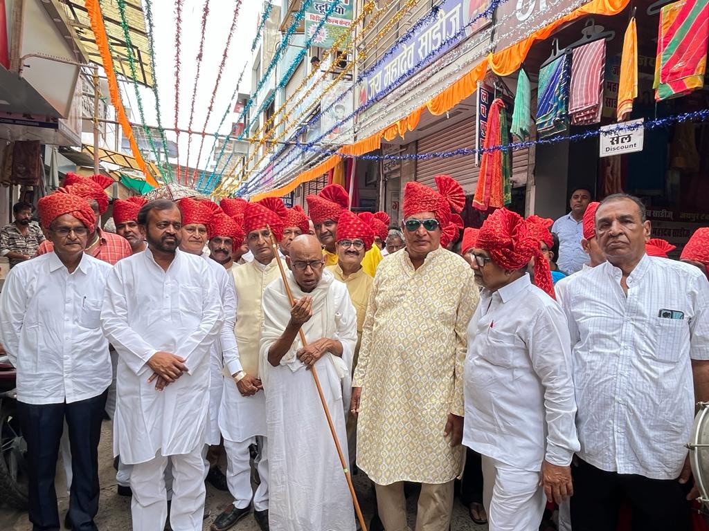 पर्युषण महापर्व के समापन पर बुधवार को शहर में जैन समुदाय की ओर से गुरु भगवंत मणीप्रभ विजय महाराज एवं इन्द्ररक्षित विजय महाराज की निश्रा में भगवान महावीर स्वामीजी की शोभायात्रा का आयोजन किया गया। शोभायात्रा में विधायक संयम लोढ़ा एवं पालिकाध्यक्ष वजींगराम घांची ने भी शिरकत की। जानकारी के अनुसार पर्युषण महापर्व के समापन पर हर वर्ष की भांति इस वर्ष भी कलापुरा स्थित बडा मंदिर से सकल संघ के साथ शोभायात्रा रवाना हुई। यह शोभायात्रा शहर के प्रमुख मार्गो से होती हुई पुन: मंदिर पहुंचकर गुरुभगवंतों के आशीर्वचन के बाद संपन हुई। पर्युषण महापर्व की समाप्ति पर सुबह के पारणे संघवी अचलचंद गुलाबचंद परिवार, दोपहर का स्वामीवात्सल्य फैन्सीबेन दिलीप कुमार लोणावला वालों की तरफ से पोरवाल जैन धर्मशाला में हुआ। शाम का स्वामीवात्सल्य महावीर स्मृति कुंज में भरत कुमार बस्तीमल ओटावत परिवार की ओर से किया गया। इस मौके पर जैन समाज के लोगों ने अपने स्नेहजनों से मिलकर एक दूसरे को वर्ष पर्यन्त जाने अनजाने में हुए गलतियों के लिए मिच्छामी दुक्कडम कह कर क्षमायाचना की। इस अवसर पर ओसवाल जैन संघ अध्यक्ष प्रवीण जैन, विजयसिंह लोढा, भरत जैन, छगनलाल चुनावाला, सचिव सुकनराज जैन, नरेन्द्र जैन, मनीष सर्राफ, संजीव सुराणा, सुधीर जैन, दिनेश सांकरिया, किशोर अंबावत, चंपालाल जैन, मांगीलाल जैन नोवीवाला, आकाश जैन, प्रकाश गांधी, शेषमल, पंकज जैन, अजय परमार, नरेश जैन, भावेश जैन, प्रवीण जैन सहित कई समाज बंधु उपस्थित थे।
