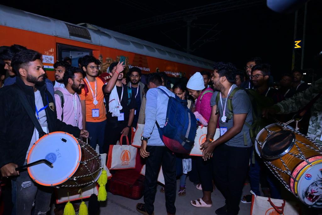 काशी तमिल संगमम-2 में शामिल होने ने किए तमिल श्रद्धालुओं का पहला दल “गंगा” रविवार को काशी पहुंचा। काशी-तमिल संगमम के लिए विशेष ट्रेन से प्रतिभागियों का जत्था बनारस स्टेशन पहुंचा। छात्रों का डमरू के वादन संग भव्य स्वागत किया गया। काशी भ्रमण के लिए छात्रों की शुरुआत बाबा विश्वनाथ के धाम से हुई।