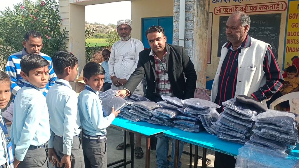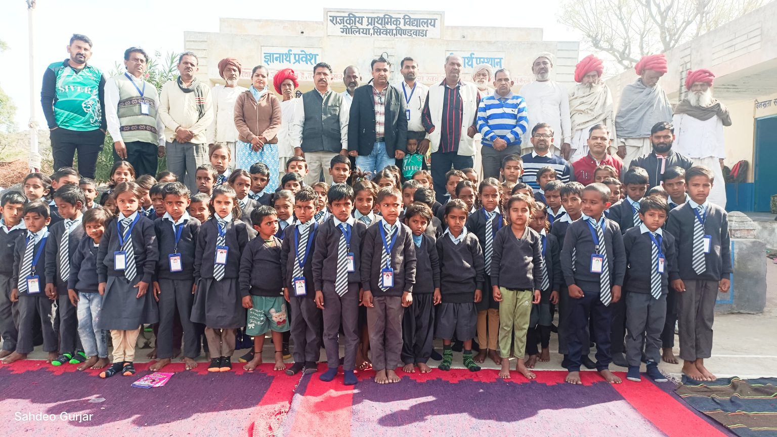 इस मौके पर स्थानीय विद्यालय के संस्थाप्रधान श्री प्रभुदास जी व स्थानीय स्टाफ श्री सहदेव जी गुर्जर एवं श्रीमती केशर मेघवाल ,भंवरलाल जी रेबारी, मुकेश जी चोपडा, APF से श्री विक्रम, श्री हेमराज शर्मा ,श्री कृष्ण कुमार यादव एवं ग्रामीण उपस्थित रहे।सर्दी की वर्दी अभियान के द्वारा सहदेव गुर्जर ने अब तक इन विद्यालयों के शिक्षक साथियों के सहयोग से निम्नलिखित विद्यालयो में स्वेटर उपलब्ध करवाए है – राप्रावि. गोलिया सिवेरा, राप्रावि. गोलिया मूरी, राउप्रावि झांकर, राउप्रावि मूरी।पूरे राजस्थान में अब तक 10 जिलों के लगभग 4000 विद्यार्थियों तक अभियान पहुंच चुका है।