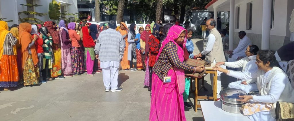 आर्थिक रूप से कमजोर तबके के लोगों को कंबल वितरित करती ब्रह्माकुमारी संगठन की संयुक्त मुख्य प्रशासिका बीके शशि प्रभा व अन्य।