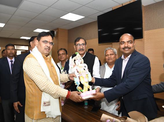 मुलाकात कर कृष्ण भगवान की मूर्ति मुख्यमंत्री को की भेंट,
