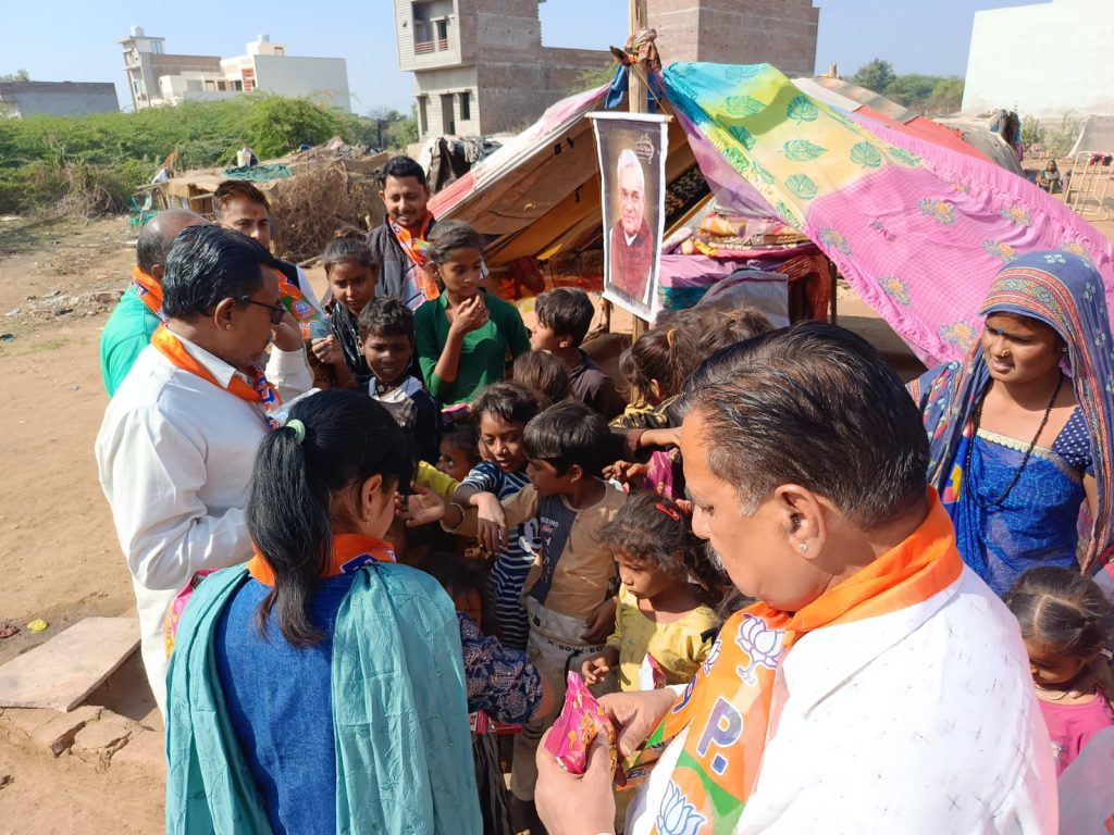जिसमे भाजपा मण्डल पिण्डवाडा के कार्यकर्ताओ द्वारा सिरोहीरोड के अजारी रोड के कच्ची बस्ती व अजयपुरा कॉलोनी की कच्ची बस्ती मे फल फ्रूट व बिस्किट वितरण किये गए ।