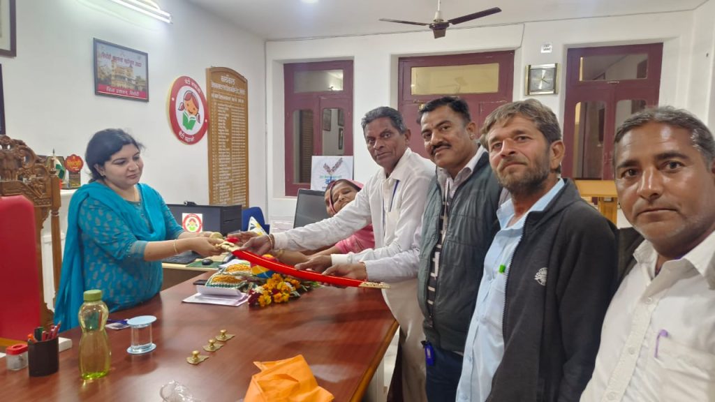 जिला कलेक्टर श्री मती शुभम चौधरी जिला कलेक्टर सिरोही के पद भार ग्रहण करने पर अंतर्राष्ट्रीय मानवाधिकार सुरक्षा संगठन के द्वारा जिला अध्यक्ष कानाराम परिहार श्री मति जिला महिला अध्यक्ष भगवती देवी ने साफा व माला तलवार भेटकर हार्दिक अभिनंदन स्वागत किया ।