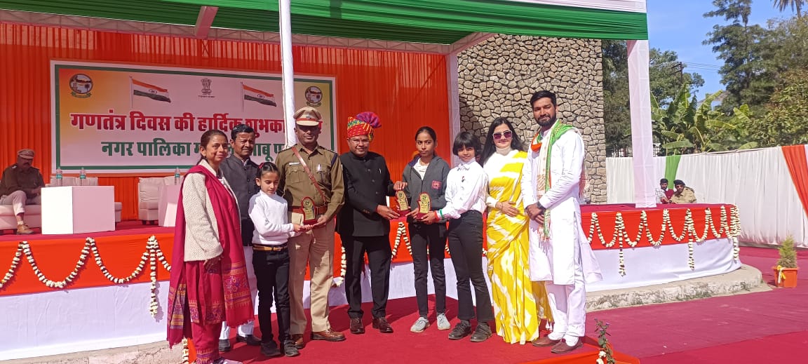 माउंट आबू उपखंड अधिकारी गौरव सालुंखे ने ध्वजारोहण किया साथ ही माउंट आबू के पोलो ग्राउंड में नगर पालिका मंडल द्वारा उपखंड स्तरीय समारोह का आयोजन भी किया गया जहां पर उपखंड अधिकारी ने ध्वजारोहण किया वहीं स्कूली बच्चों ने मार्च पाट कर राष्ट्रीय ध्वज को सलामी दी.. वहीं नन्हे मुन्ने बच्चों ने व्यायाम प्रदर्शन किया तो स्कूली बच्चों ने सांस्कृतिक प्रस्तुतिया दि..वही आज के दिन माउंट आबू उपखंड स्तर पर 26 लोगों को उल्लेखनीय कार्यों के लिए प्रशंसा पत्र दिए गए देखिए माउंट आबू के इस गणतंत्र दिवस की कुछ झलकियां.. वही गणतंत्र दिवस पर भाजपा पदाधिकारी एवं कार्यकर्ताओं ने चाचा म्यूजियम चौराहे पर कांग्रेस के पदाधिकारी ने शांति विजय पार्क और सहित शहर के शिक्षण संस्थाओं सरकारी कार्यालय पर भी आन बान शान के साथ तिरंगा फहराया गया..और जिला स्तरीय गणतंत्र दिवस पर सामारोह में माउंट आबू के नगर पालिका नाकेदार राजकिशोर शर्मा को वीआईपी विजिट पर उत्कर्ष कार्य करने को लेकर राज्य मंत्री ओटाराम देवासी ने सम्मानित किया..