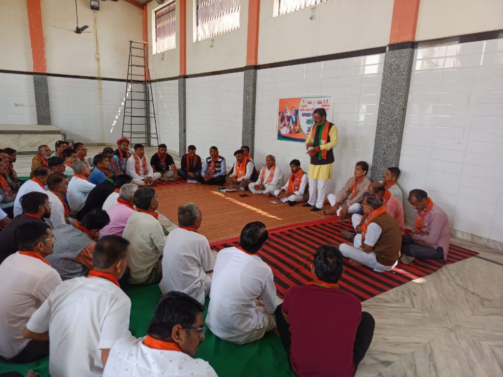 पिण्डवाड़ा – भाजपा के प्रदेशव्यापी गांव चलो अभियान को लेकर आज शनिवार को पिण्डवाडा व झाड़ोली मण्डल की कार्यशाला सरोवर तट गोगाजी मन्दिर अग्रवाल धर्मशाला मे आयोजित की गई इस अभियान के जिला संयोजक नारायण देवासी की मौजूदगी मे जिला उपाध्यक्ष किरण पुरोहित पिण्डवाडा आबु के विधायक समाराम गरासीया पिण्डवाडा मण्डल अध्यक्ष महावीर यती झाड़ोली मण्डल अध्यक्ष लीलाराम प्रजापत आबु पिण्डवाडा के विस्तारक चन्दन सिंह जिला सहसंयोजक हेमेंद्र सिंह ने महाभारती के चरणो नतमस्तक होकर कार्यशाला आयोजित की ,जिसमे जिला संयोजक ने सभी कार्यशाला मे आये हुए संयोजक व मोदीदुत जो इस अभियान से जुड़े विस्तारक व पदाधिकारीगण को कहा की प्रधानमंत्री नरेंद्र मोदी की सरकार ने विगत 10 वर्षो मे गरीब कल्याण,महिला सशक्तिकरण, अन्तरराष्ट्रीय सुरक्षा संस्कृती, उधान से विश्व मे भारत का गौरव बढा है पिण्डवाडा आबु के चौथी बार इस विधान सभा से चुने हुए विधायक समाराम गरासीया ने कहा जिस प्रकार राजस्थान मे भाजपा की सरकार बनी है ठीक उसी प्रकार से आने वाले लोकसभा चुनाव मे जीतकर भाजपा की सरकार बनानी है राजस्थान की 25 लोक सभा सीटे भाजपा की झोली मे डालकर इस बार 400 प्लस करके मोदीजी की सरकार तीसरी बार बनानी है ।