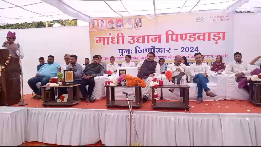 पिण्डवाडा – पिण्डवाड़ा नगर के गांधी उधान का पुनःजिर्णोदार कर उद्घाटन हुआउद्घाटन कार्यक्रम में विशिष्ट अतिथि पिंडवाड़ा पंचायत समिति प्रधान नितिन बंसल,पालिका अध्यक्ष सुरेंद्र मेवाड़ा,पालिका उपाध्यक्ष चेलाराम देवासी, अधिशासी अधिकारी ललित सिंह देंथा के विशेष आतिथ्य में हुआ,कार्यक्रम का शुभारंभ गांधी उधान पर विशेष अतिथियों के स्वागत के दरमियान पिंण्डवाड़ा पंचायत समिति प्रधान एवं कार्यक्रम के विशिष्ट अतिथि नितिन बंसल,तहसीलदार मोहनलाल, नगर पालिका अध्यक्ष सुरेंद्र मेवाड़ा,उपाध्यक्ष चेलाराम देवासी,अधिशासी अधिकारी ललित सिंह देंथा,जलदाय सहायक अभियंता राण सिंह ने फीता काटकर किया गयाकार्यक्रम मे पालिका अध्यक्ष मेवाड़ा ने बताया कि इस उधान में व्यायाम के लिए जिम छोटे बच्चों के लिए झूले साथ ही साथ उड़ान में हरी घास एवं रंग-रोहन,झुलो से आमजन मे रहा आकर्षण का केंद्र,उद्घाटन कार्यक्रम इस अवसर पर पिंडवाड़ा पंचायत समिति प्रधान एवं कार्यक्रम के विशिष्ट अतिथि नितिन बंसल ने कहा कि पिण्डवाड़ा नगर मे जिर्णोदार के बाद यह बहुत सुन्दर उधान बना इसी प्रकार रोहिडा ग्राम पंचायत के सरपंच पवन राठौड़ ने भी पंचायत क्षेत्र में उद्यान का विकास किया गया है तो इस कार्य को देखकर हमें भी हमारे क्षेत्र में ऐसा उधान तैयार करना होगा,साथ ही साथ विशेष अतिथि बंसल ने कहा कि पालिका अधिशासी अधिकारी देंथा एवं पालिका अध्यक्ष मेवाड़ा से आग्रह किया कि पिंण्डवाड़ा मे तालाब का भी सौंदर्य करण करके विकसित किया जाएवही पालिकाध्यक्ष मेवाडा ने बताया इस उधान के पुन:जिर्णोदार को लेकर करीबन 25-30 लाख की लागत से तैयार किया गया है वही आगामी वालकेम चौराहा,उरिया अरट से पिण्डवाडा डिवाइडर रोड तैयार करना हैवही पालिका अध्यक्ष मेवाड़ा ने बताया कि आज शाम को गांधी उधान में आने वाले क्षेत्र वासियों के लिए निशुल्क चाय एवं नाश्ते की व्यवस्था की गई हैइस अवसर पर पालिका अध्यक्ष सुरेंद्र मेवाड़ा विशिष्ट अतिथि नितिन बंसल पालिका उपाध्यक्ष चेलाराम देवासी अधिशासी अधिकारी ललित सिंह देंथा,पूर्व पालिका अध्यक्ष एवं पार्षद अचल सिंह बालिया,पार्षद रतन जैन, पार्षद कैलाश रावल,पर्बत सिंह काबा,छगन बी टांक,पूर्व पार्षद रणछोड़ रावल, संजय गर्ग,प्रकाश मीणा, लतीफ खान पूर्व पार्षद रमेश भाटिया,पार्षद चंपत मेवाडा,पार्षद देवीबाई,नीलम बोराणा,पूर्णिमा रावल,बिंदिया देवी भाण्ड,हिरी देवी, मातृछाया हॉस्पिटल डायरेक्टर भारतपाल बैंदा,लायंन हनीश रावल,सुरेश बोराणा,प्रदिप भांड,व्यापार मंडल अध्यक्ष अशोक रावल,स्वास्थ्य निरक्षक अनिरुद्ध सिंह राजपुरोहित,जेईएन जसपाल सिंह,करण सिंह,भरत पुरोहित, अर्जुन व्यास,जमादार कमलेश भाटी,मुकेश कंडारा,भारत विकास परि