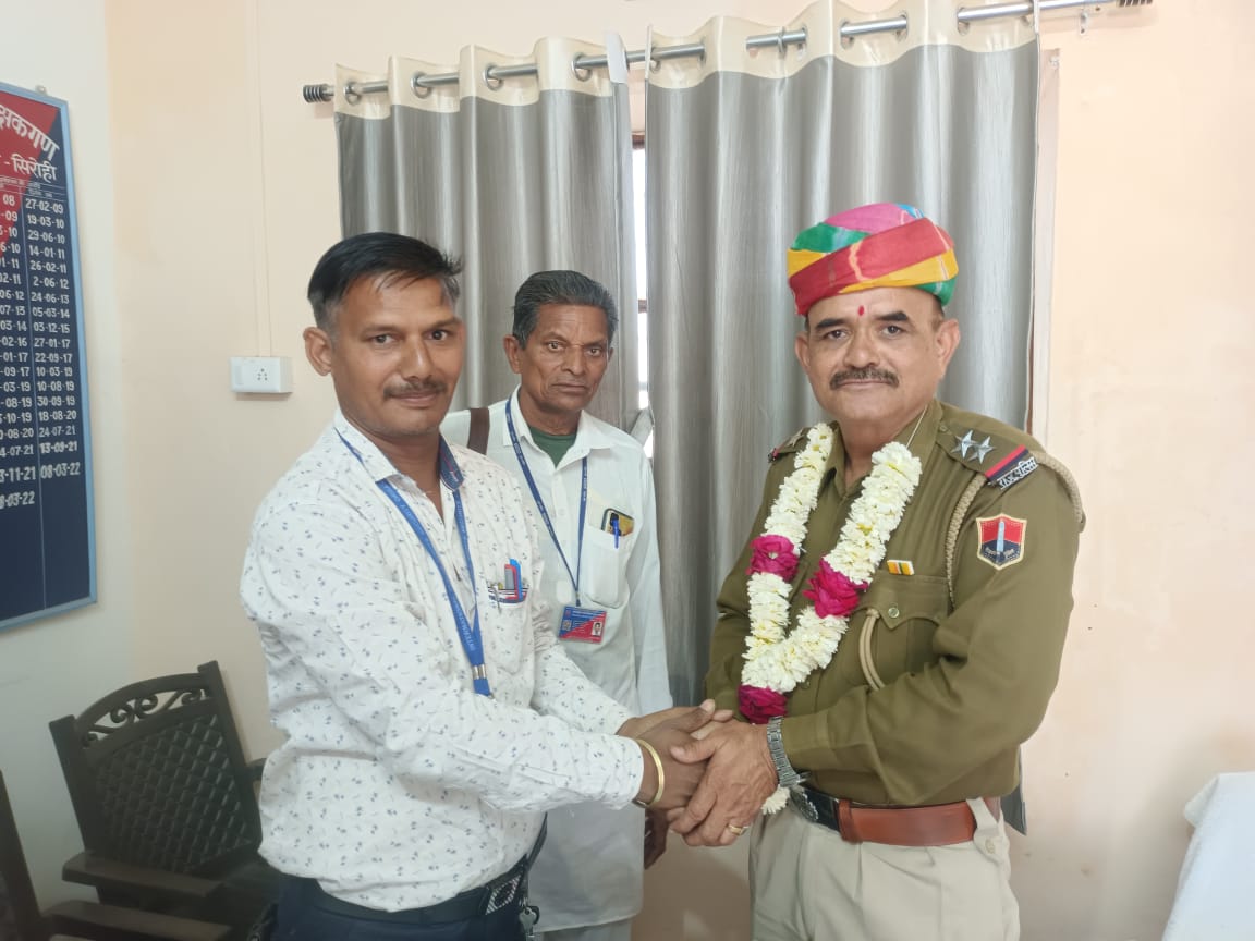 अंतर्राष्ट्रीय मानवाधिकार सुरक्षा संगठन सिरोही अध्यक्ष ने जानकारी देते हुए बताया कि सिरोही एवम तहसील शिवगंज के अंतर्राष्ट्रीय मानवाधिकार सुरक्षा संगठन द्वारा आज पालड़ी एम थाना नवनयुक्त थाना अधिकारी श्री हुकूमसिंहजी का पद ग्रहण करने पर जिला अध्यक्ष कानाराम परिहार एवम तहसील अध्यक्ष अनिल कुमार प्रजापत ने श्री भाटी सहाब को साफा एवम माला पहनाकर बहुमान किया ।