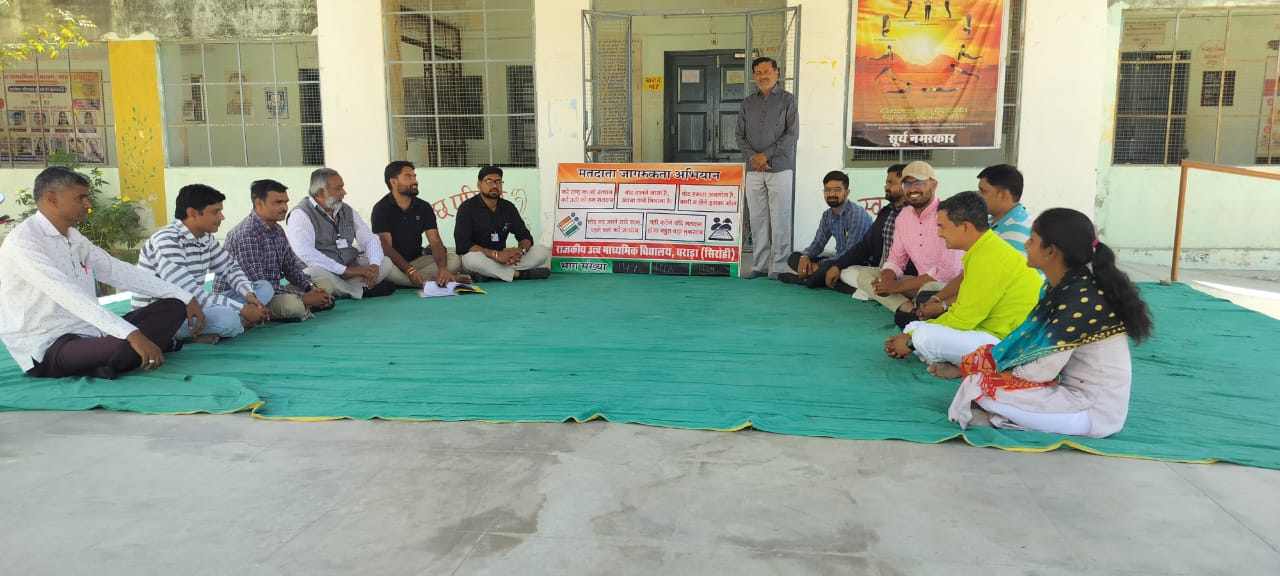 वराडा सर्कल के दस बूथों पर आगामी लोकसभा चुनावों में शत प्रतिशत मतदान को लेकर आम लोगो को जागरूक करने के उद्देश्य से विद्यालयों में गठित चुनावी पाठशाला क्लब ईएलसी की बैठक आयोजित की गई मीडिया प्रभारी संजय शर्मा ने बताया कि वराडा,मनोरा, सतापुरा,भूतगांव व जमोतरा विद्यालयों में आयोजन हुआ जिसमे बताया कि आगामी लोकसभा चुनावों में लोगों को मतदान हेतु जागरूक करने के लिए सभी को मिलकर प्रयास करना है मतदाताओं को लोकतंत्र में मतदान का महत्व समझाने के लिए सामुहिक प्रयासों पर जोर दिया वराडा में पीईईओ भँवरलाल पुरोहित,उपप्राचार्य मोहनलाल सुथार,गोवाराम मेघवाल,लक्ष्मण कुमार,रमेश कुमार, जोगेंद्र कुमार,भरत पुरोहित,महेंद्र सिंह सहित बीएलओ बीएल मूंगिया, ओमप्रकाश शर्मा,आकाश पुरोहित व प्रियंका संत उपस्थित रहे।