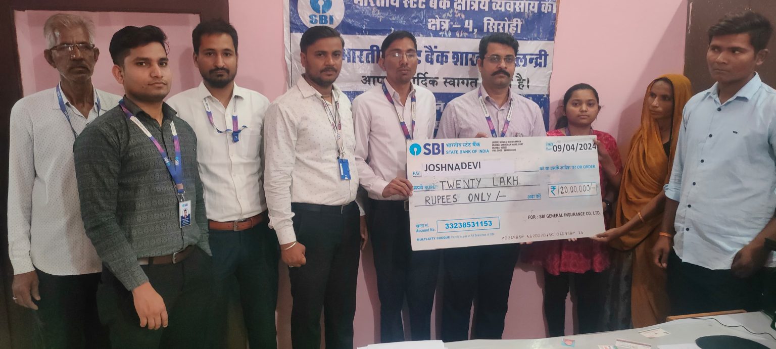 एसबीआई शाखा प्रबंधक कालंद्री में मृतक के आश्रितों को मिला 20 लाख का बीमा का भुगतान