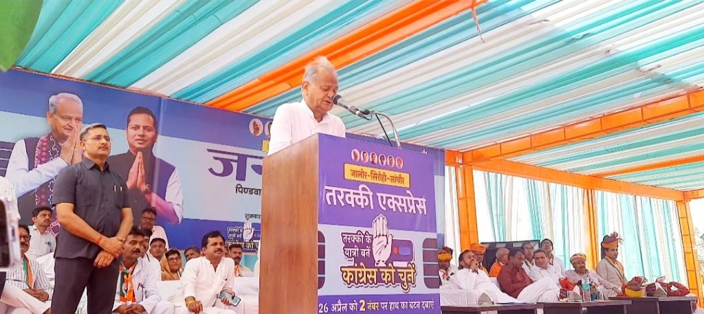 पूर्व मुख्यमंत्री अशोक गहलोत ने पिण्डवाड़ा के कोजरा मे कीया जनसभा को संबोधित,लोकसभा प्रत्याशी वैभव गहलोत के समर्थन मे जनसभा मे उमडी लोगो की भीड़।