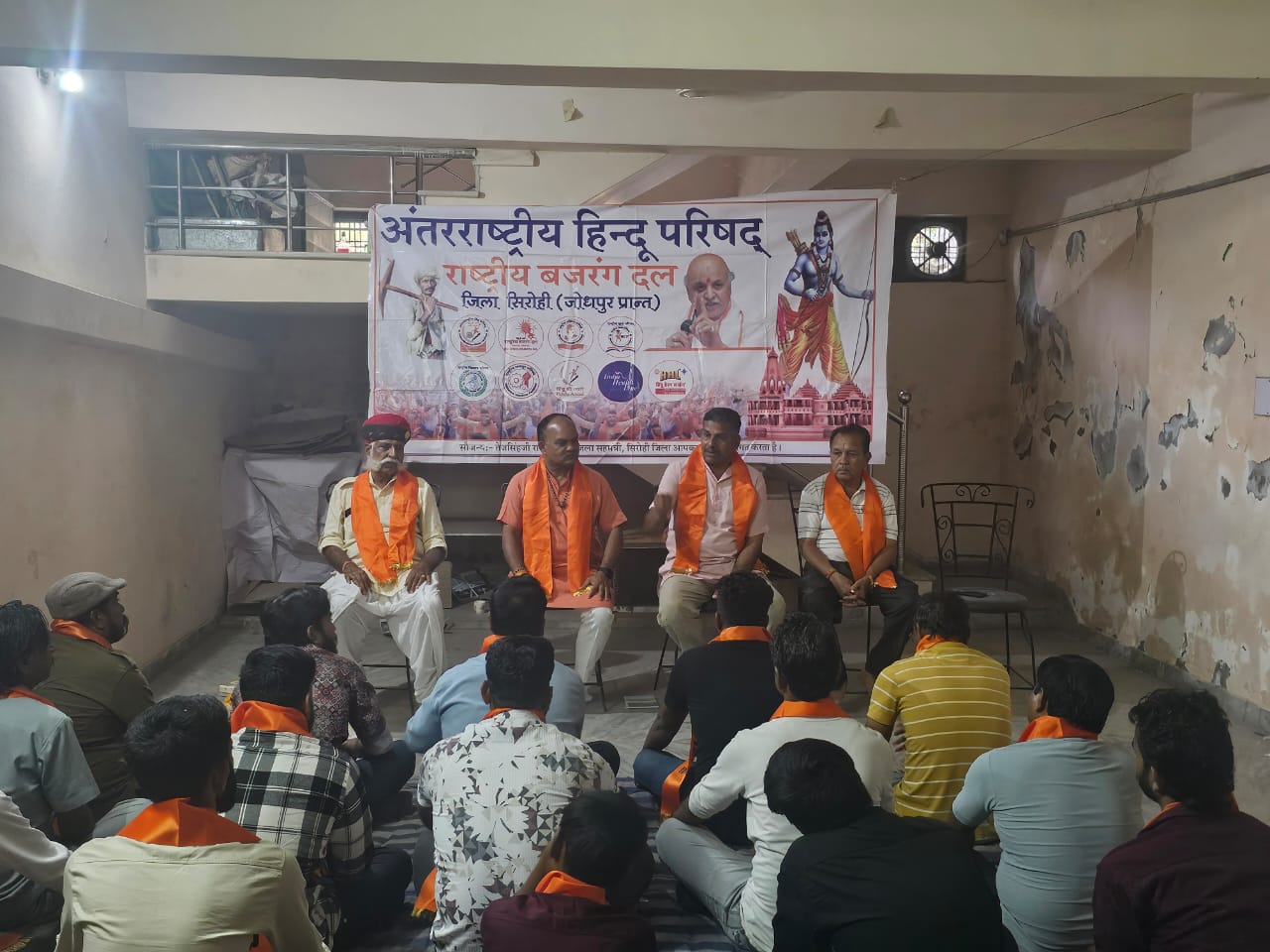 आज अंतराष्ट्रीय हिन्दू परिषद व राष्ट्रीय बजरंग दल जिला कोर कमेटी की बैठक जिला कार्यालय सिरोही पर हुई ।
